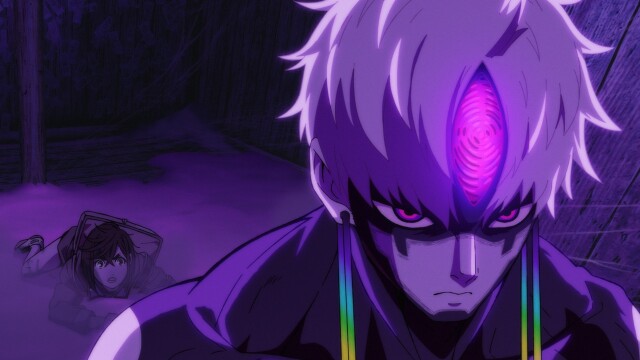 Jiji tries to stop Momo and Okarun, who are being controlled by telepathic waves, from killing themselves.