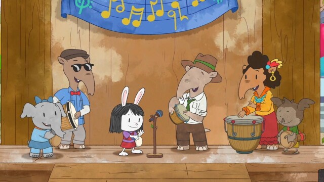 The kids try to locate a missing Srta. Tapir at a music festival by listening for her drums; the kids try to track down a bird thief.